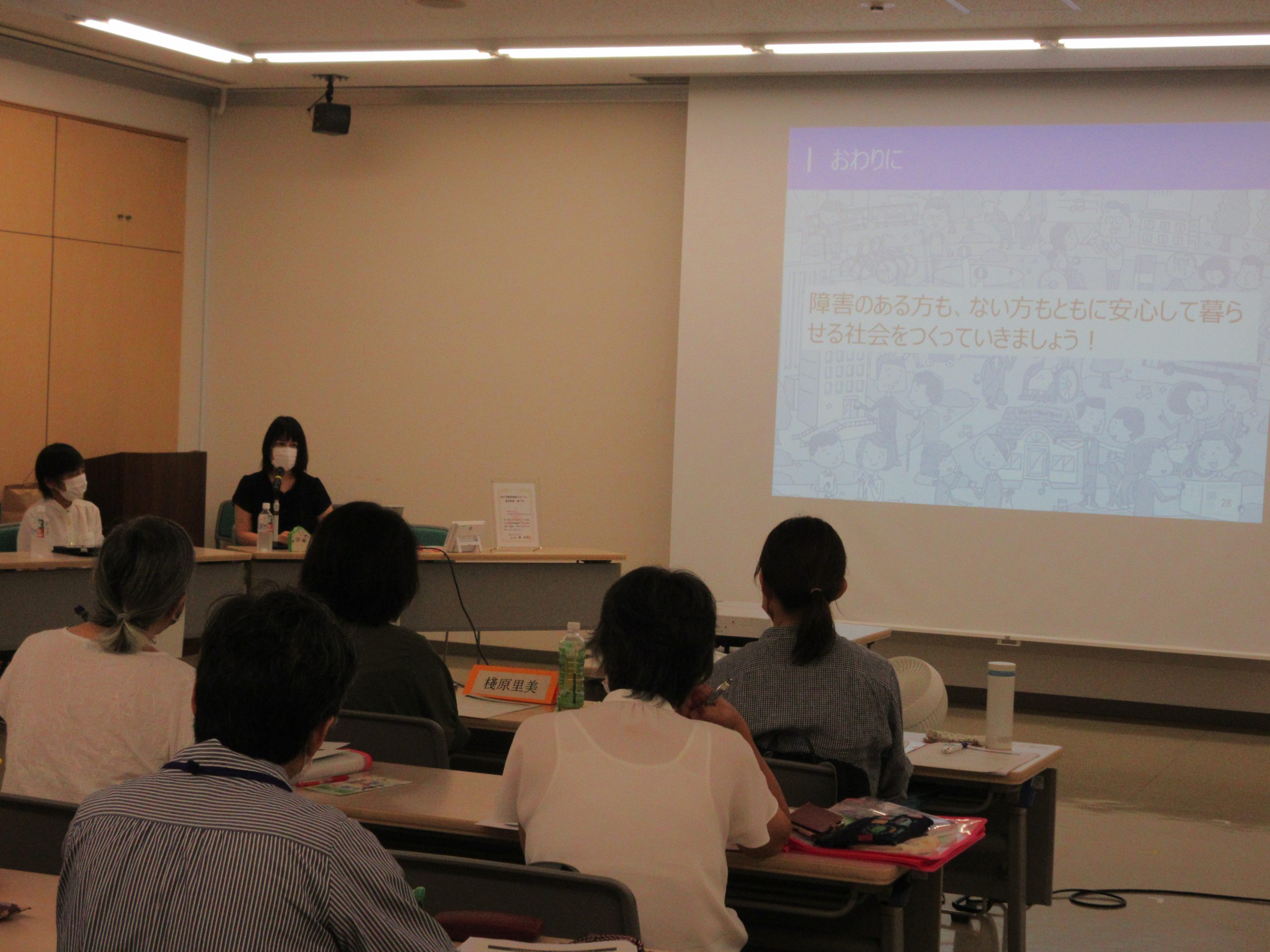 9月13日(水)みやぎ生協こ~ぷくらしの助け合いの会にて研修を行いました。活動会員の方々を対象に、精神障害のある講師と視覚障害のある講師による、障害者を取り巻く障壁(バリア)や必要な配慮についての講義を実施しました。
