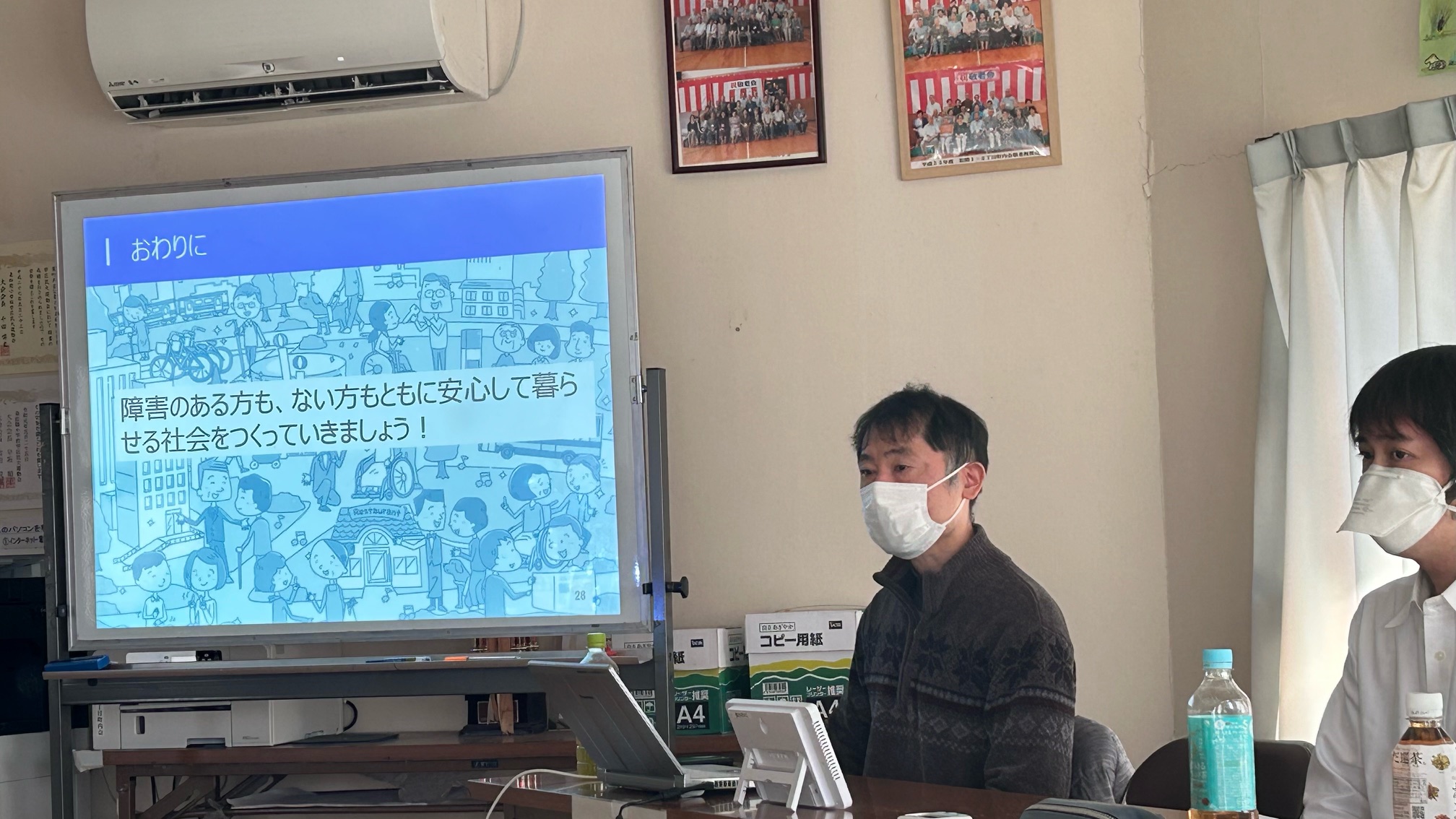 1月30日(火)ハートフル松陵地区社協部会にて研修を行いました。役員や町内住民の方々を対象に、精神障害のある講師と発達障害のある講師による、障害者を取り巻く障壁(バリア)や必要な配慮についての講義を実施しました。