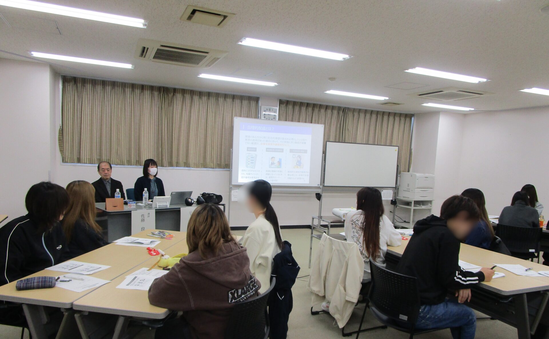 12月1日(月)に東北外語ビジネス専門学校様にて研修を行いました。学生を対象に、精神障害のある講師と、視覚障害のある講師による、障害者を取り巻く障壁(バリア)や必要な配慮についての講義を実施しました。