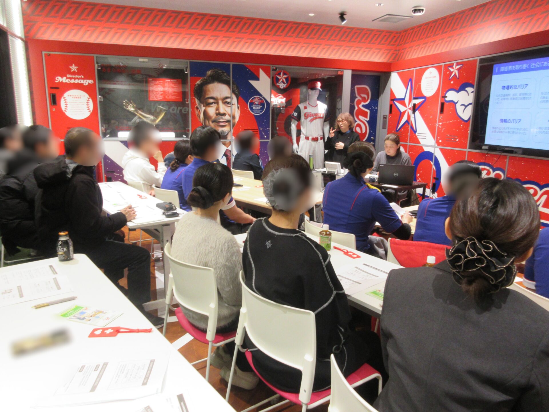 1月26日(月)にマルハン仙台駅東店様・マルハンSLOT仙台一番町店様にて研修を行いました。精神障害のある講師と聴覚障害のある講師による、障害者を取り巻く障壁(バリア)や必要な配慮についての講義を実施しました。