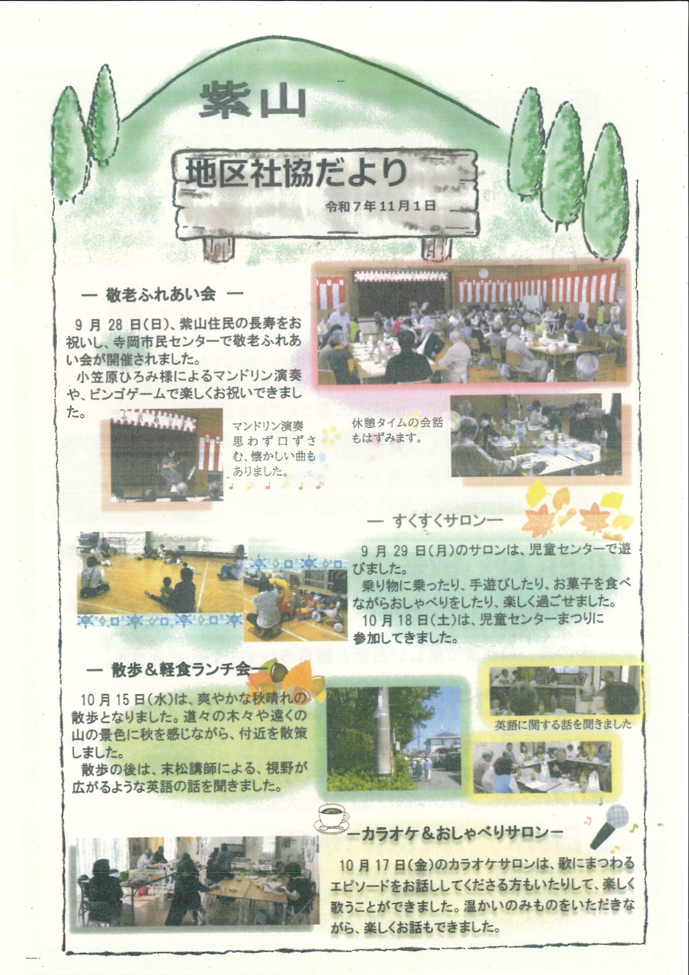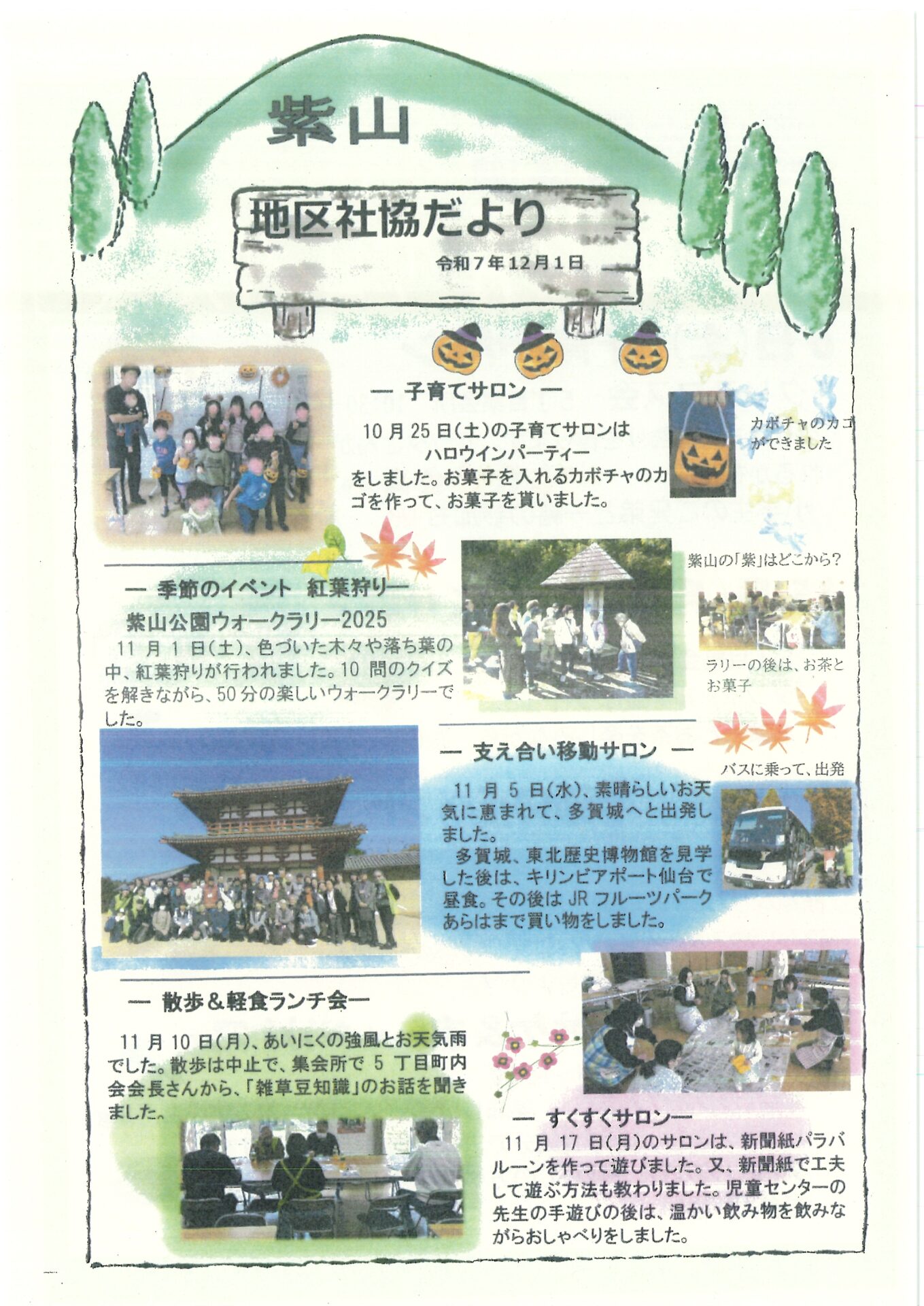 Home活動を知りたい地区社協について泉区紫山地区社会福祉協議会 紫山むらさきやま地区社会福祉協議会 基本情報と主な活動レポート 基本情報 (地区社協活動シート) サロン一覧 (地区社協活動シート別紙) 広報紙 令和7年12月発行 令和7年11月発行 令和7年10月発行 令和7年9月発行 令和7年7月発行 令和7年6月発行 令和7年5月発行 令和7年3月発行 令和7年2月発行 令和7年1月発行 令和6年12月発行 令和6年11月発行 令和6年10月発行 令和6年9月発行 令和6年7月発行 令和6年6月発行 令和6年5月発行 令和6年3月発行 令和6年2月発行 令和6年1月発行 令和5年12月発行 令和5年11月発行 令和5年10月発行 圏域 (主な町名) 紫山1丁目~5丁目 連合町内会 紫山連合町内会 学区 寺岡小,寺岡中 地域包括支援センター 寺岡
